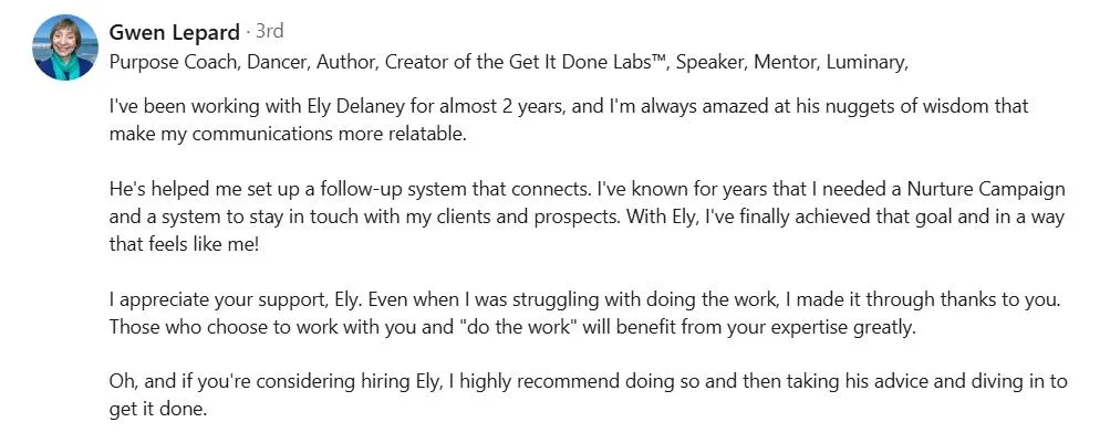 Hey there! I look forward to our call and seeing how we can work together. In the meantime, To give you a small taste of what I REALLY do, below is a presentation I did for the Impact School of Marketing. I shared a lot about automation and how to really change your way of building real relationships with people. (Plus even some quickly actionable scripts you might find useful). I'd love to hear your thoughts of the presentation on our call.